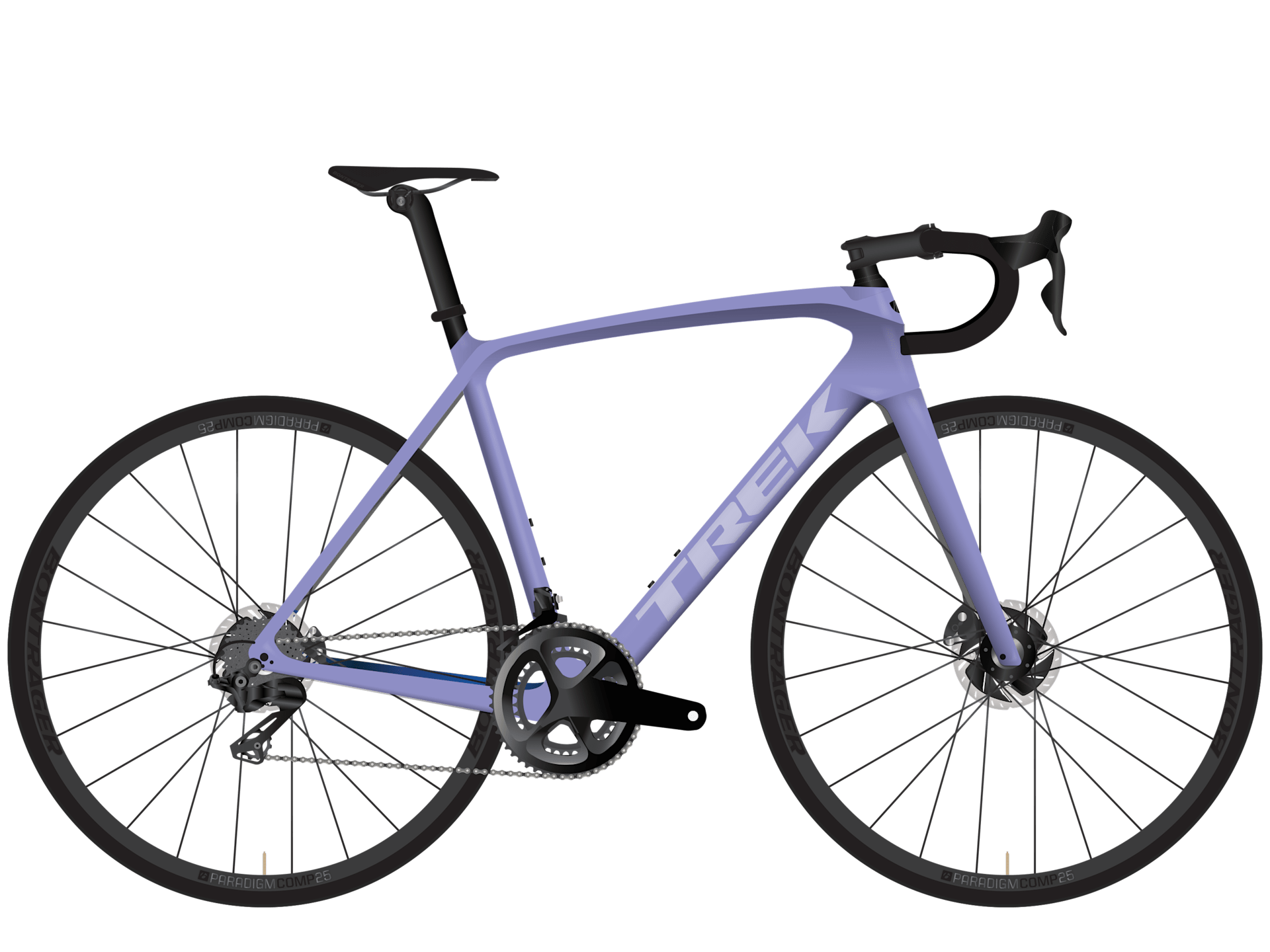 ドライブトレインにはベーシックな、Shimano 105(2×11速)を搭載。ホイールはBontrager Paradigm SL、タイヤはAeolus Comp 700×28mmを装備し、様々なシチュエーションで活躍する扱いやすい1台です。