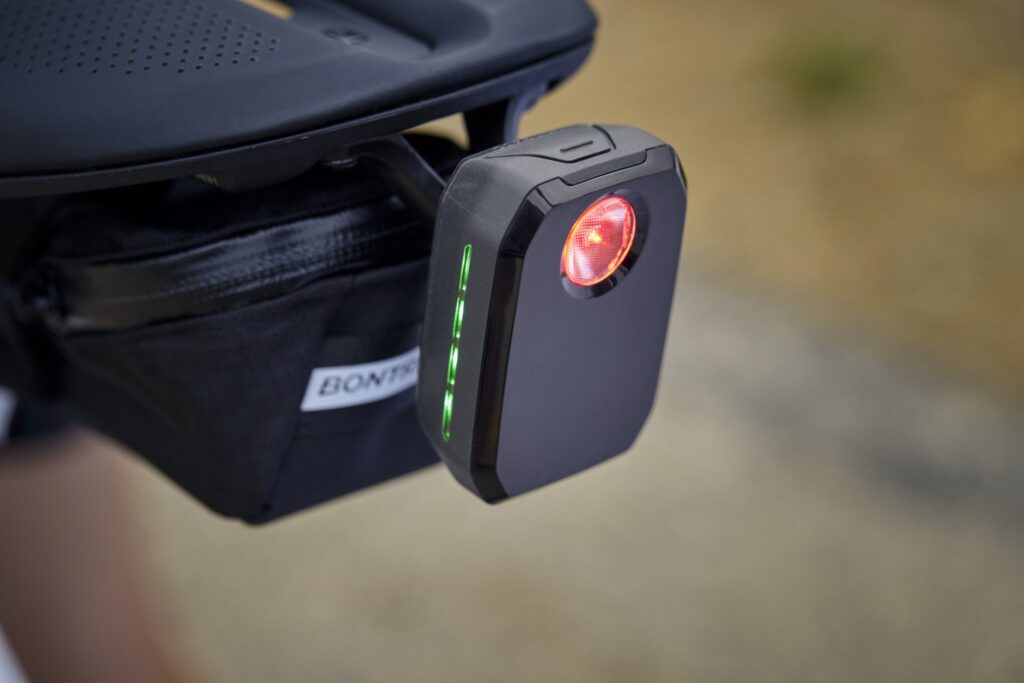 後方から接近する車両を最大240m検知し、GPS式サイクルコンピュータやスマホで通知してくれるデバイス。